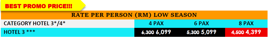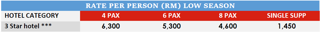 - The above price per person (adult) base on half twin/triple sharing basis.